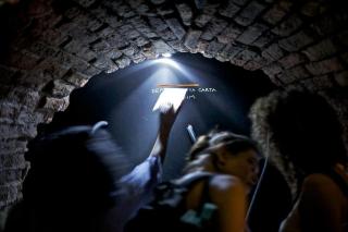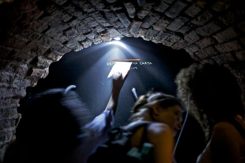 quarto: nos fechamos em um buraco dentro do tunel da casa das caldeiras para ler as cartas durante 2h. interessados podiam deixar suas cartas para serem lidas e também escutar através dos funis. #16