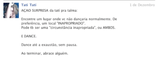 mini-ação #DANCE ! Publicado em 14 de dezembro de 20126 de março de 2014 por talma salem CORDOBA -ARGENTINA 2011 fotos de Matías Zanotto Compartilhe isso: Clique para compartilhar no X(abre em nova janela) 18+ Clique para compartilhar no Facebook(abre em nova janela) Facebook Curtir Carregando... Relacionado