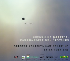 Esta intervenção foi criada dentro do projeto “Guerrilha Poética: cartografia dos sentidos” contemplado pelo prêmio Funarte Petrobrás Klauss Vianna 2012. Ela é fruto de um processo de imersão da artista, em uma sala de ensaio de um antigo hospital hoje transformado no Condomínio Cultural (Instituto Cultural Mundo Novo), após 3 semanas de convivência com 20 outros artistas. Um olhar para dentro. Um corpo que avança e traça só o seu caminho.