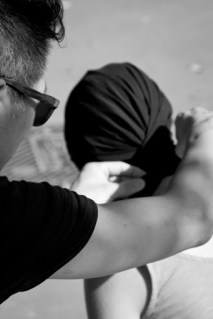 Performance de Talma Salem com instrução do coreógrafo Americano Sherwood Chen, t r a v e s í a é uma intervenção para espaços públicos que proporciona a alteração do espaço-temporal por meio de uma movimentação instável e contínua.