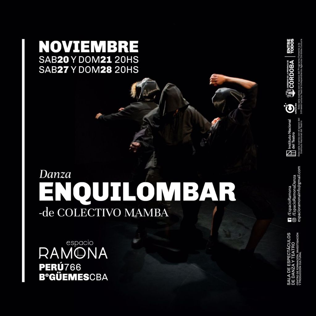 ENQUILOMBAR es devenir quilombo, la activación de un dispositivo coreográfico desde el proceso de les performers en reconocerse como personas negras y marrones. El foco está puesto en el atravesamiento de narrativas sobre los cuerpos racializados, apropiándolas y transformándolas en una acción colectiva.