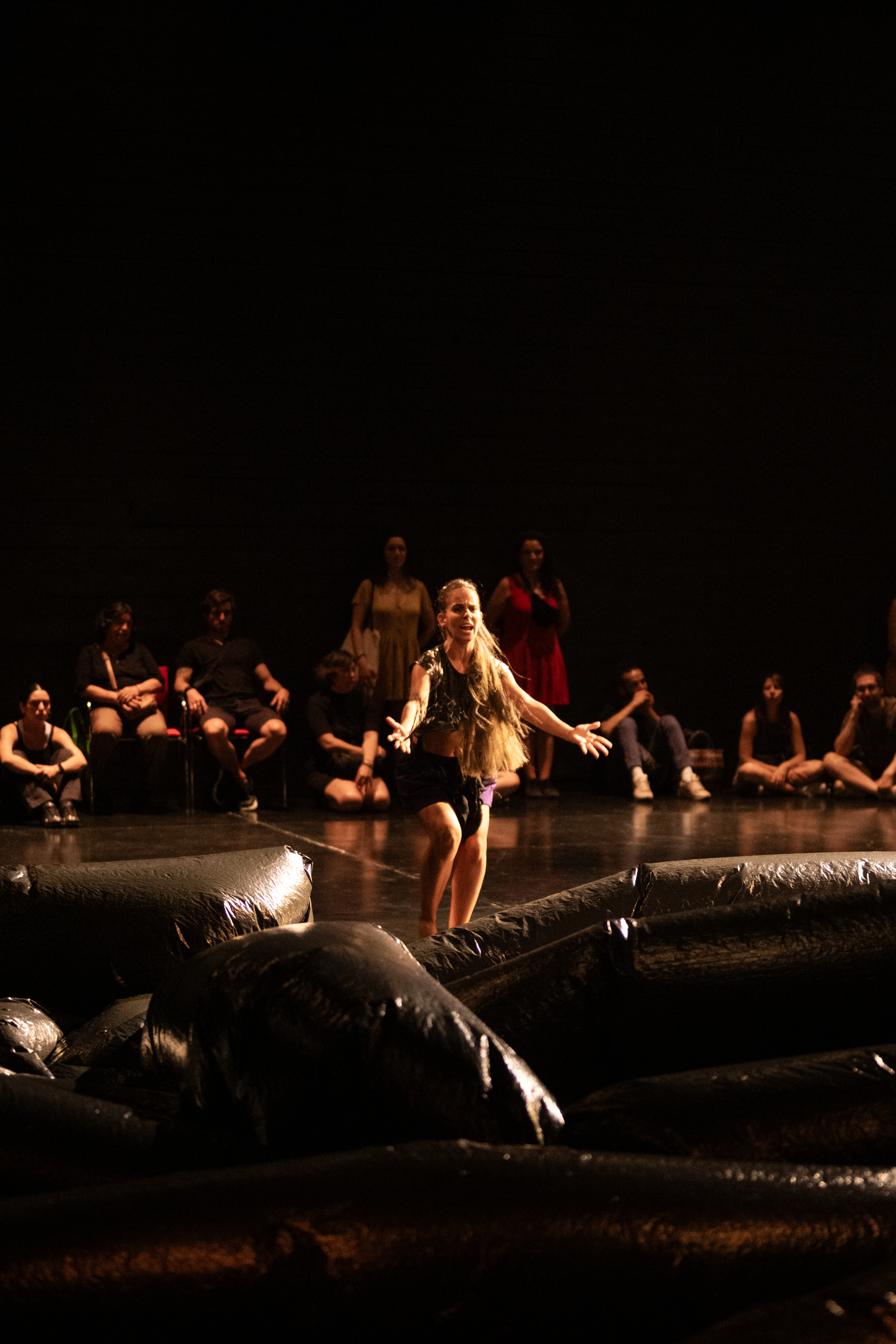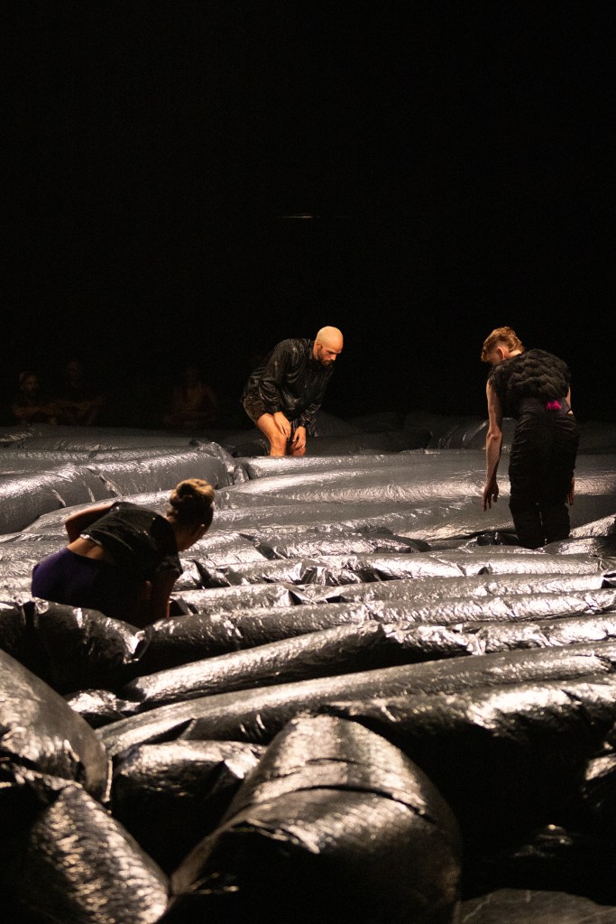 Espectadores y performers habitan un espacio en constante transformación en donde 300 metros de plástico reciclado es territorio y paisaje a la vez, un ser en sí mismo que desafía lógicas centradas en lo humano y abre espacio a lo que está más allá de lo visible.
